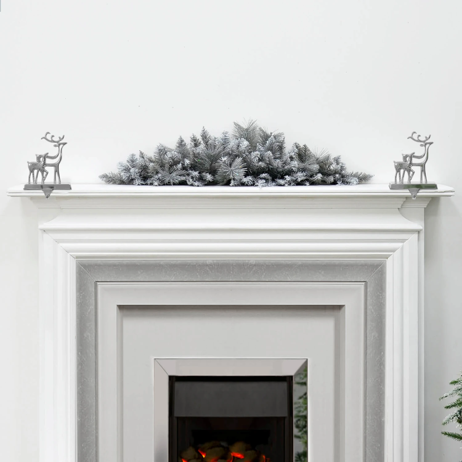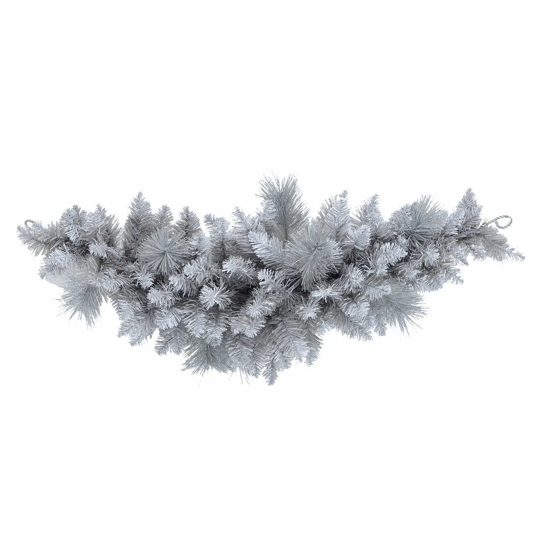The 24″ artificial xmas swag is made with silver glitter covered pine branches with white frosted tips for a wintry look. Perfect for decorating your mantlepiece, door, stair bannister or windowsill.