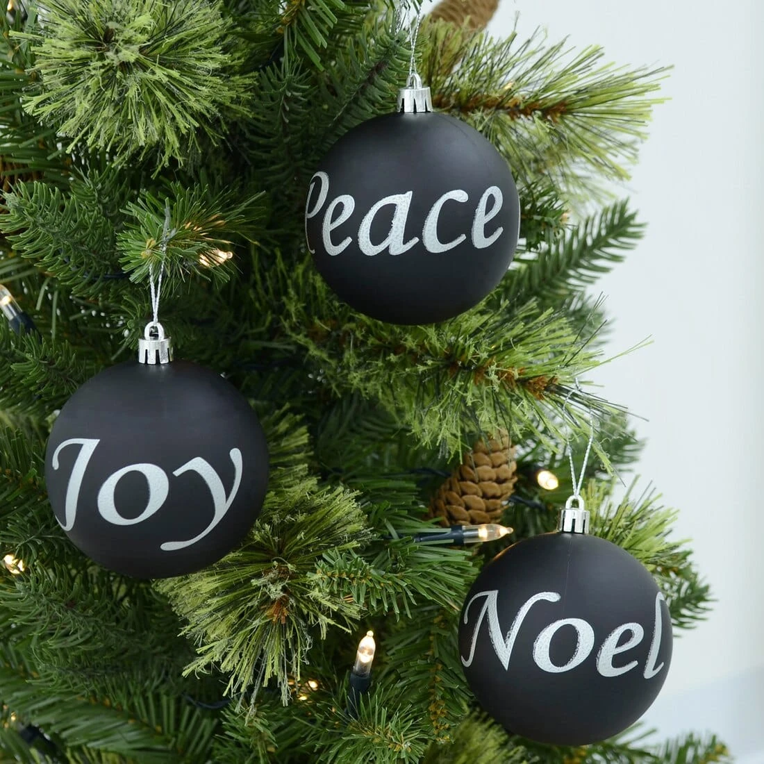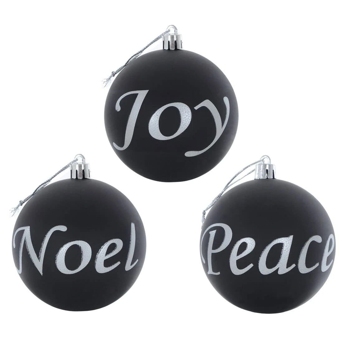 Add a traditional touch to your Christmas decor this year with these Joy, Peace and Noel baubles from Mr Crimbo! Each set comes with six decorative baubles, 2 x joy, 2 x peace and 2 x noel. The black baubles have silver writing with silver caps and hanging thread, and the red baubles have gold writing with gold caps and hanging thread.