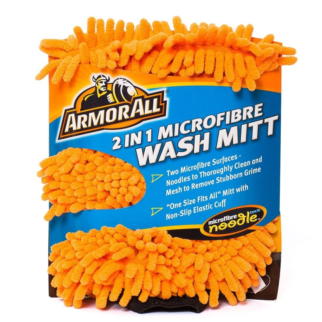 Take some of the hard work out of washing your car. This amazing versatile microfibre car wash mitt from Armor All has 2 different surfaces. One side has microfibre noodles to thoroughly clean and lift dirt. The other has a non scratch mesh for removing stubborn grime. On a one size fits all glove with non slip elastic cuff. Bonus!