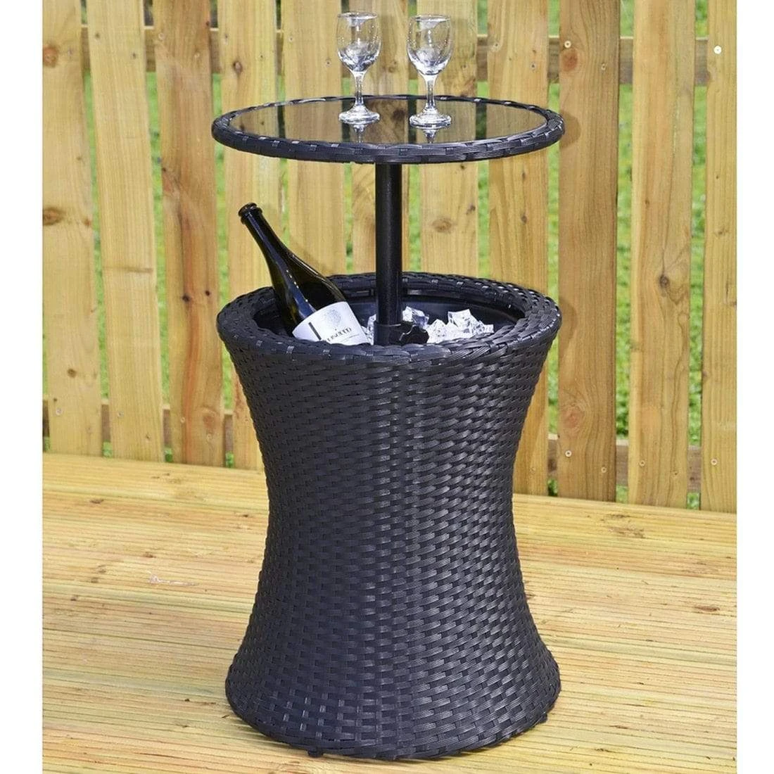 Serve perfectly chilled drinks and refreshments to friends and family outdoors this summer with the help of our rattan drinks cooler table.