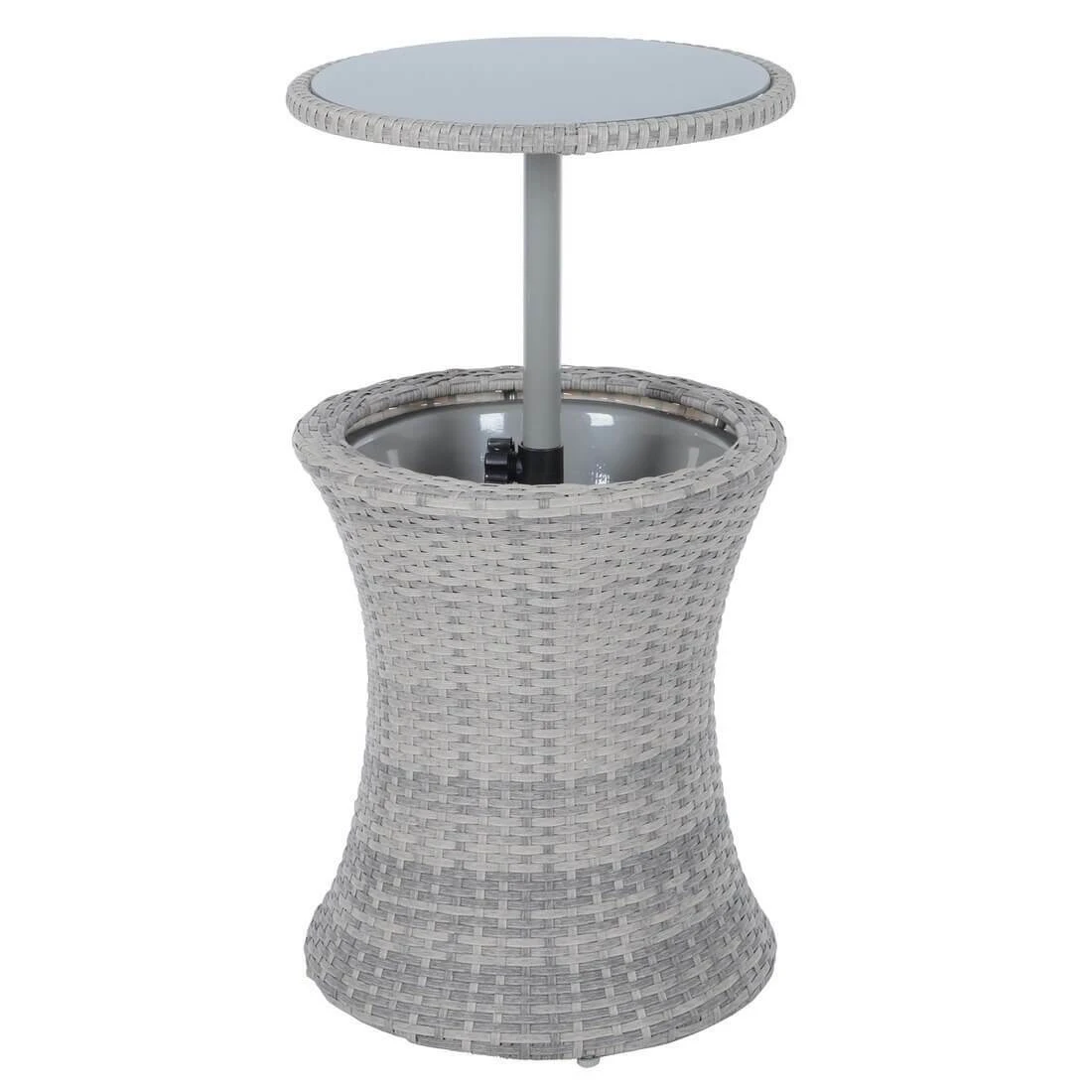 Use the easy to operate finger wheel to lift the table height and reveal a metal inner bowl that can be filled with ice to chill drinks on those hot summer days.