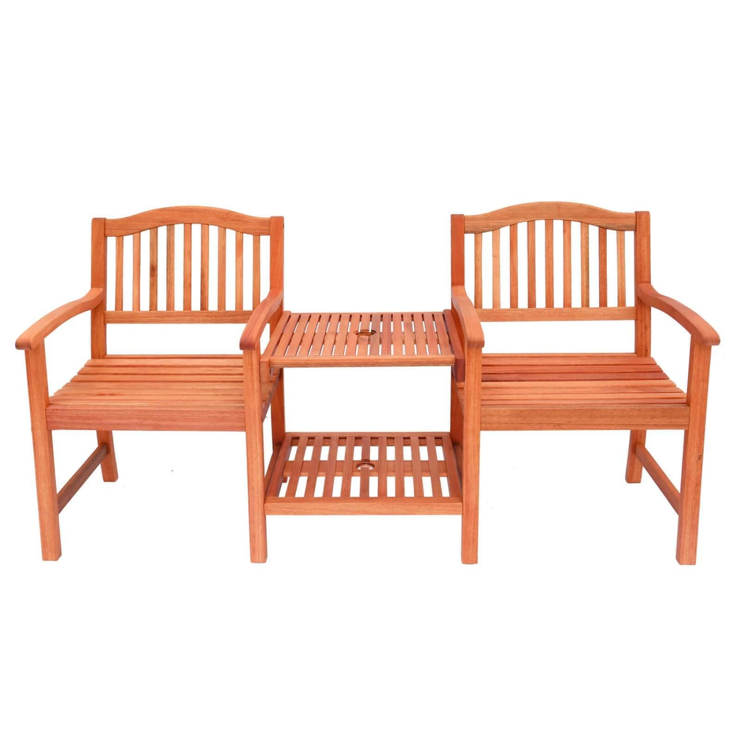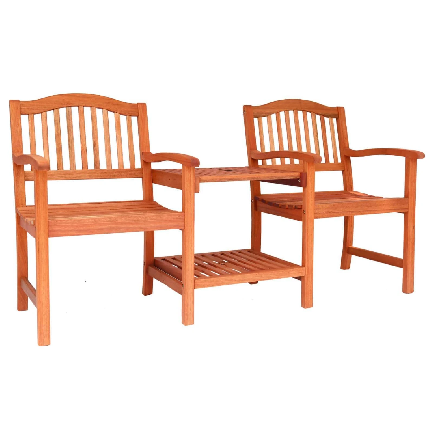 A traditional wooden love seat by Azuma for outdoor relaxation and refreshment!