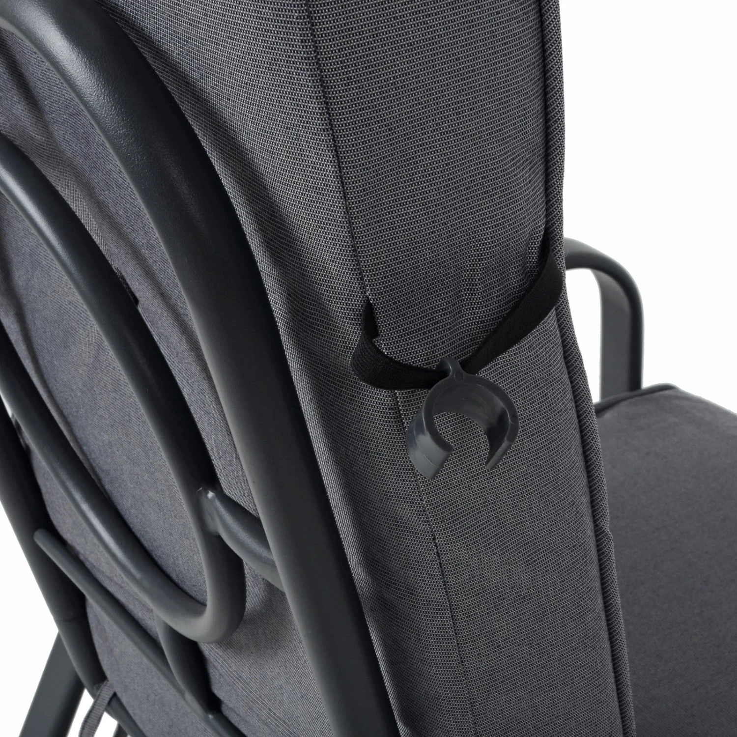 The Azuma Cadiz 6 piece garden furniture set includes 4 armchairs with deep padded cushions for comfort, a large tempered glass top dining table and a tilting crank handle parasol. Just add family and friends!