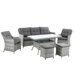 Barletta Garden Dining Set 3 Seater Sofa Grey Rattan Armchairs