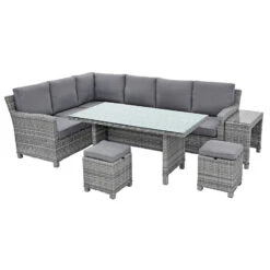 Havana Garden Dining Set Grey Rattan 3 Seater Sofas Table Stools