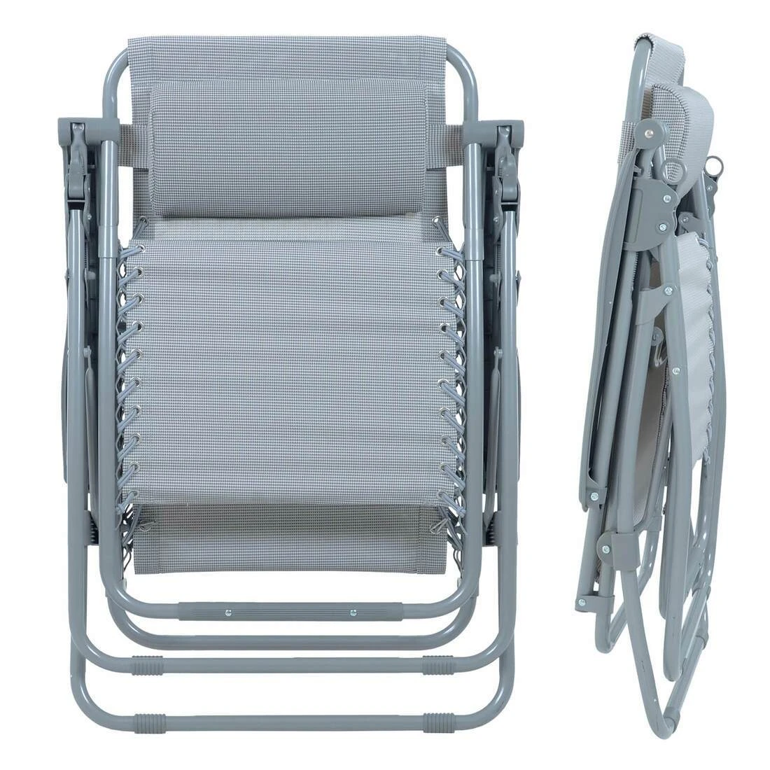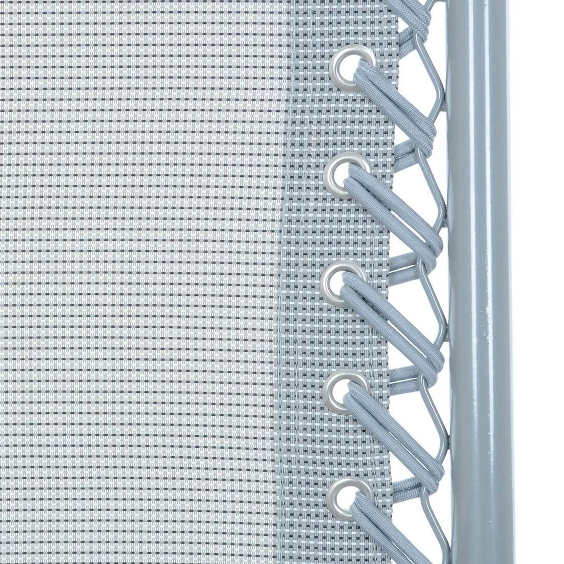 This Azuma zero gravity sun lounger is made from silver grey marl coloured hard wearing texteline material. Texteline is UV resistant, comfortable to sit on and easy to clean with a cloth and warm soapy water. The seat is attached to a strong grey powder coated tubular steel frame with elastic cords. The grey frame features grey plastic arm rests and anti-rust screws with plastic caps. It folds flat for easy transport in the car or storage in the garage, shed or caravan. So easy to take to the beach, caravan park, campsite or the back garden. This garden patio recliner chair should be stored under cover, ideally in the shed or garage, during long periods of adverse weather.