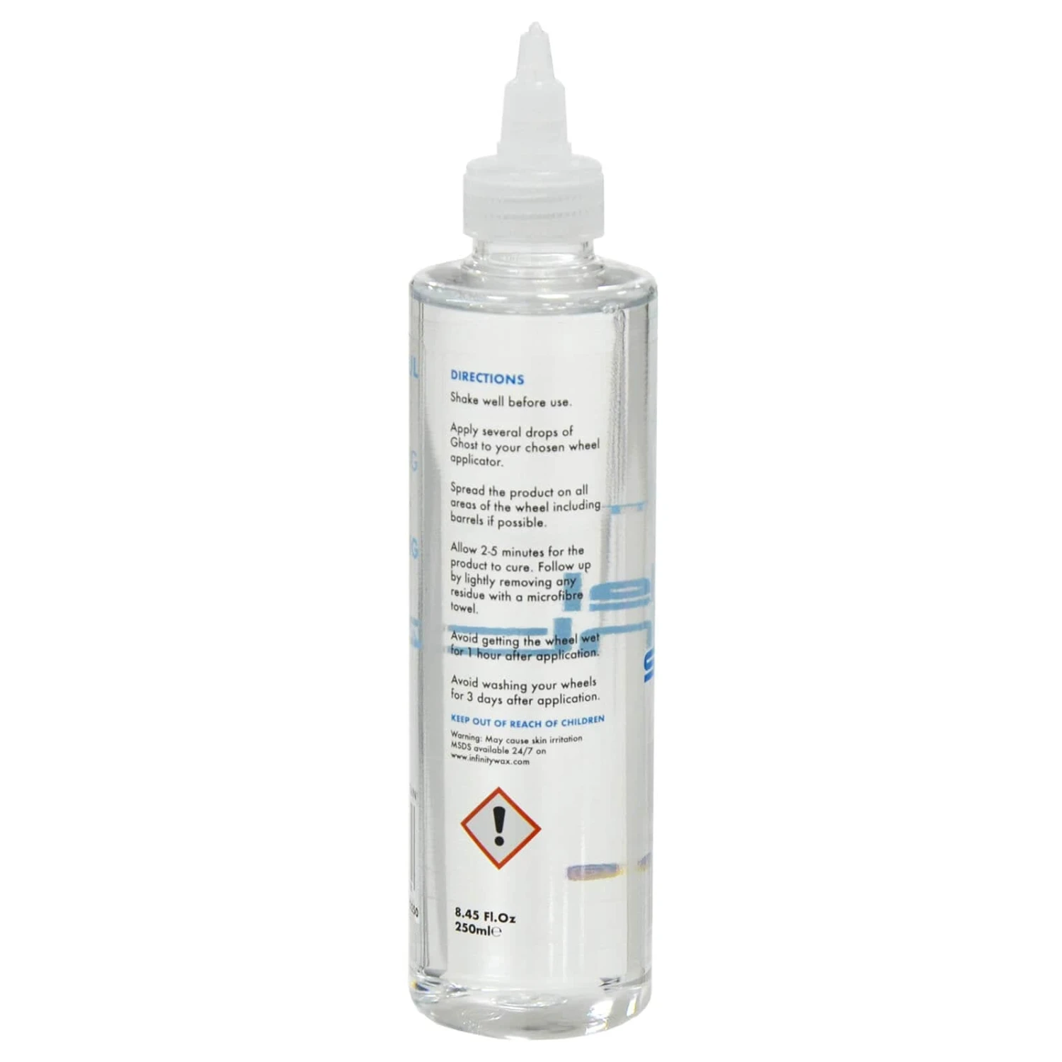 Keep out of reach of children. For use on automotive applications only. Avoid contact with rubber and plastic trim. Apply Ghost in a well-ventilated environment. Always wear gloves when using chemicals and avoid contact with bare skin. If irritation develops when using Ghost stop immediately and wash the affected area with plenty of cold water and introduce gentle scrubbing. Ghost may cause eye irritation. Always stand upwind of any spray. If Ghost encounters eyes rinse thoroughly with eyewash. Keep out of reach of children! If swallowed contact your local emergency services and do not induce vomiting.