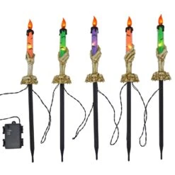 Set Of 5 LED Skeleton Candle Garden Stakes Halloween Prop 46cm