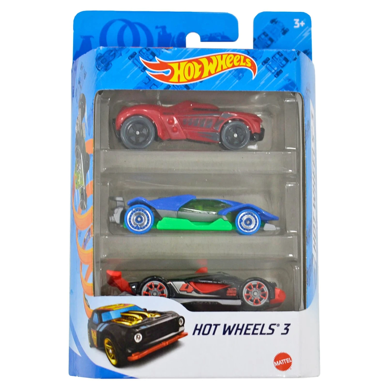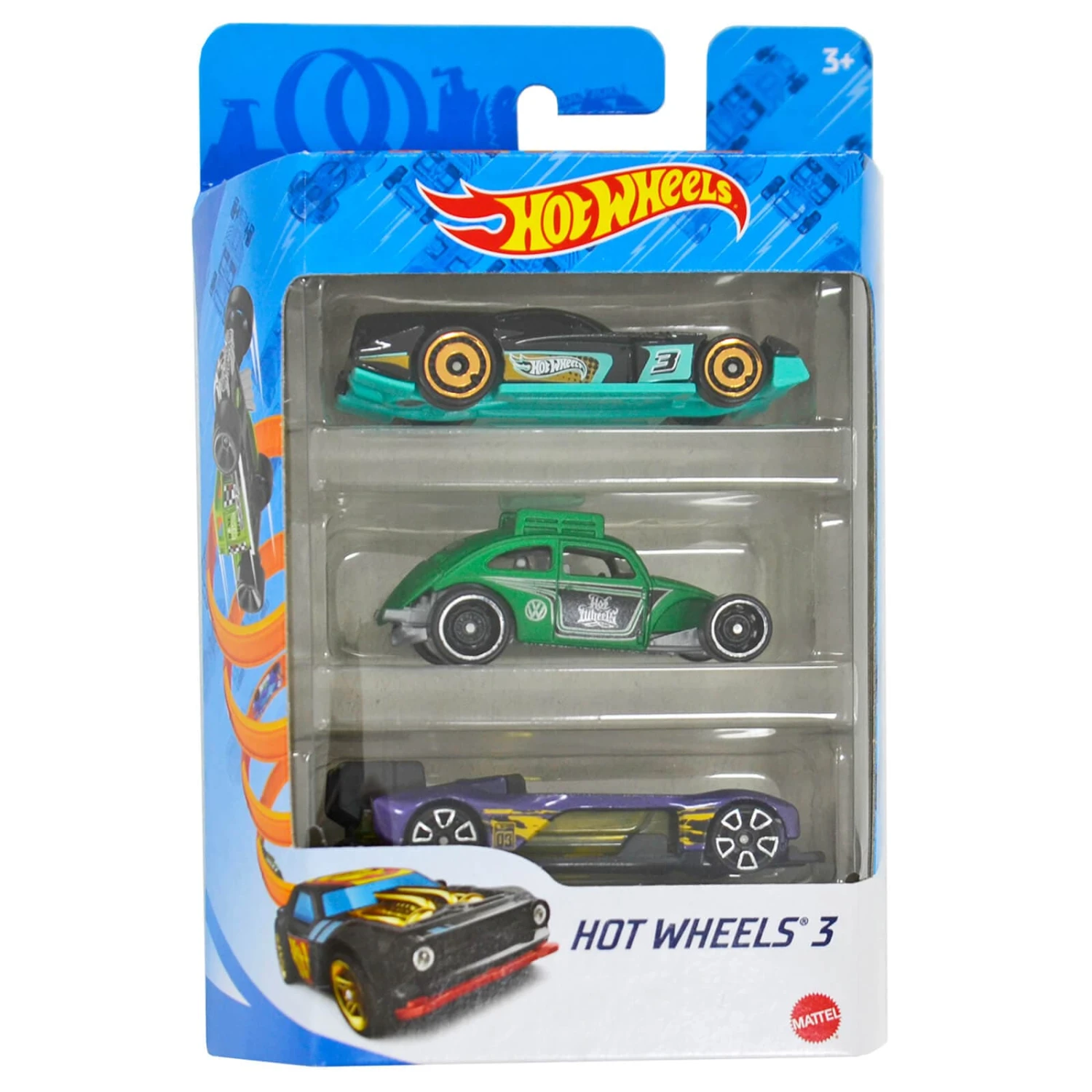 Start or add to your Hot Wheels collection with this 3 car pack. The Hot Wheels triple pack appeals to collectors, car enthusiasts and racing fans of all ages. Each vehicle is featured at 1:64 scale with realistic details and authentic decos. Suitable for ages 3+