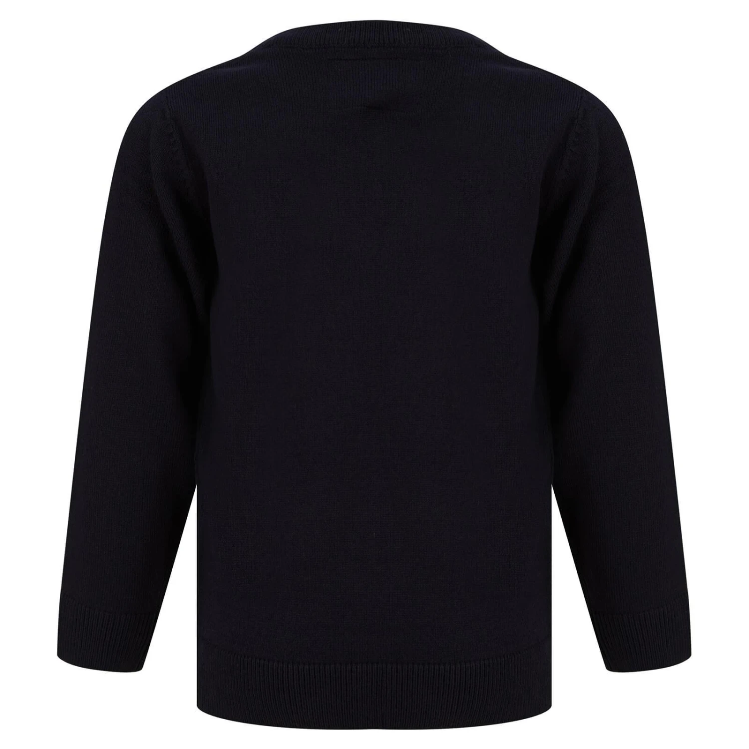 Your little one will love wearing this novelty Christmas jumper over the festive season. The xmas sweater features Rudolph the reindeer with a happy smile, wearing a Santa hat and striped scarf. The soft knit, crew neck Christmas jumper for children is available in a choice of colours and in child sizes from age 4 to 12. Perfect for family seasonal celebrations, Christmas Jumper Day and a great gift idea!