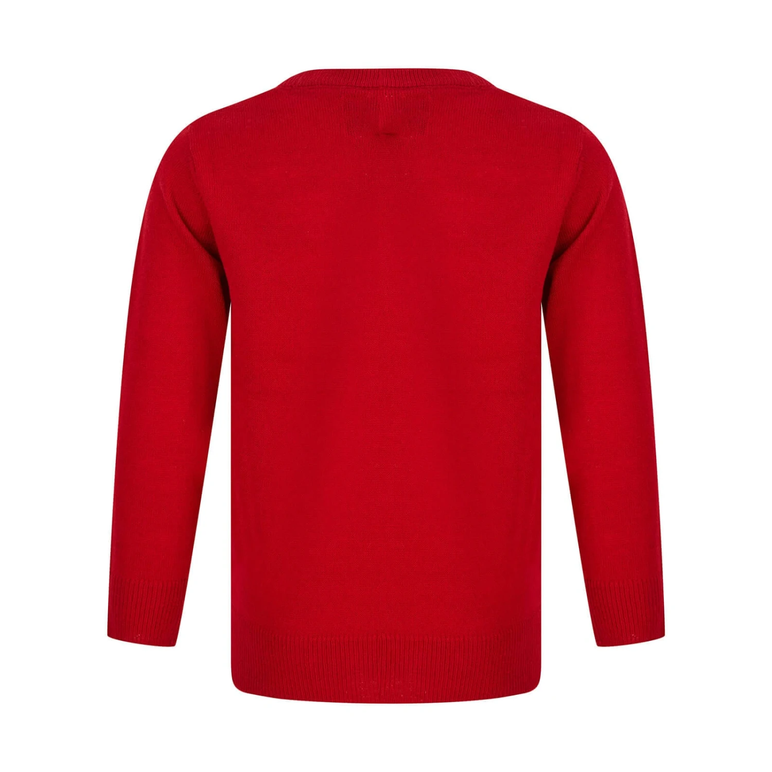 Your little one will love wearing this Christmas jumper over the festive season. The Xmas sweater features a reindeer with the words “Merry Christmas” hanging between its antlers, its own festive jumper and a 3D white pom pom on the end of his santa hat. The soft knit, crew neck Christmas jumper for kids is available in Red or Ink and in child sizes from age 4 to 12. Perfect for family seasonal celebrations, Christmas Jumper Day and a great gift idea!