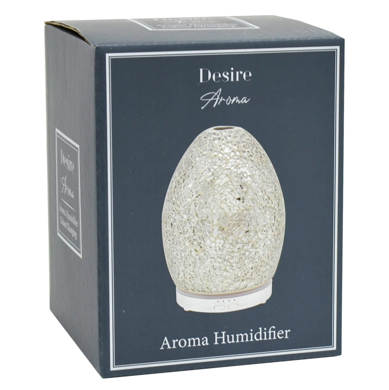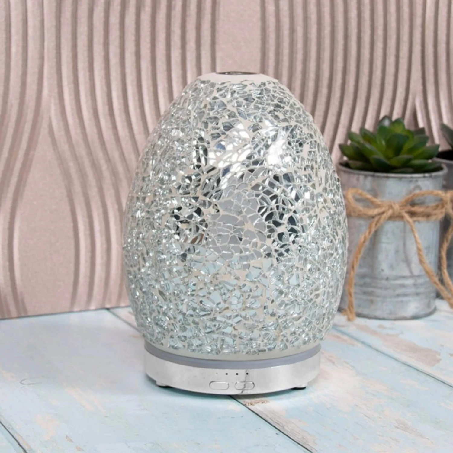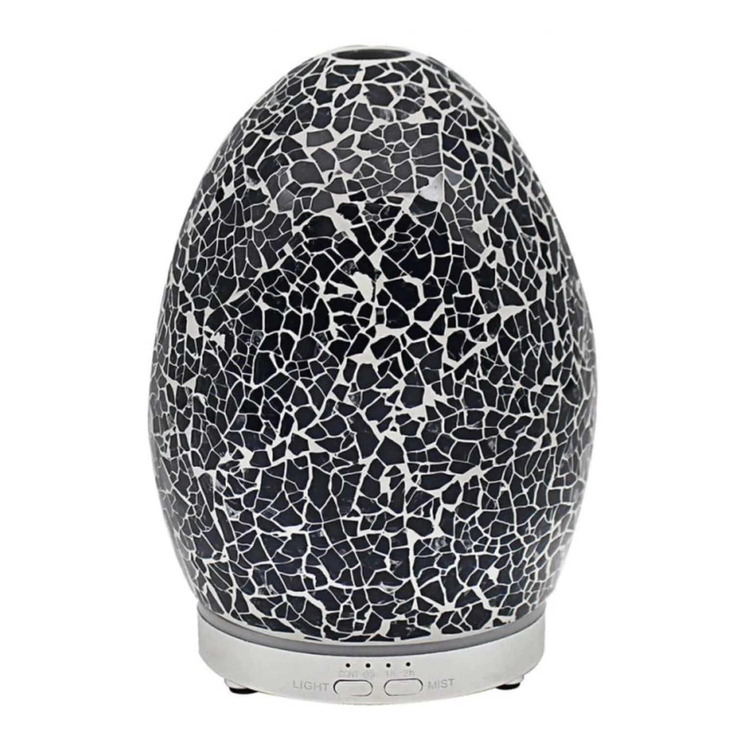The 16cm tall egg shaped Aroma humidifier lamp features a gorgeous mosaic pattern on a white ceramic shade. The colour change LED light makes an excellent focal point in your living room, bedroom or hallway. Available in a choice of colours. Great as a housewarming gift!