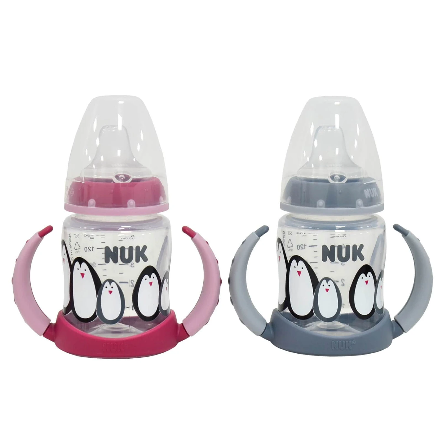 The NUK Learner Bottle Duo Set helps your little one move on easily to independent drinking. The soft and spillproof silicone spout provides a comforting drinking sensation.