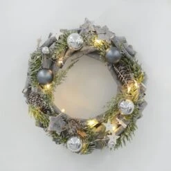 20″ Pre-Lit Decorated Artificial Christmas Wreath With Timer