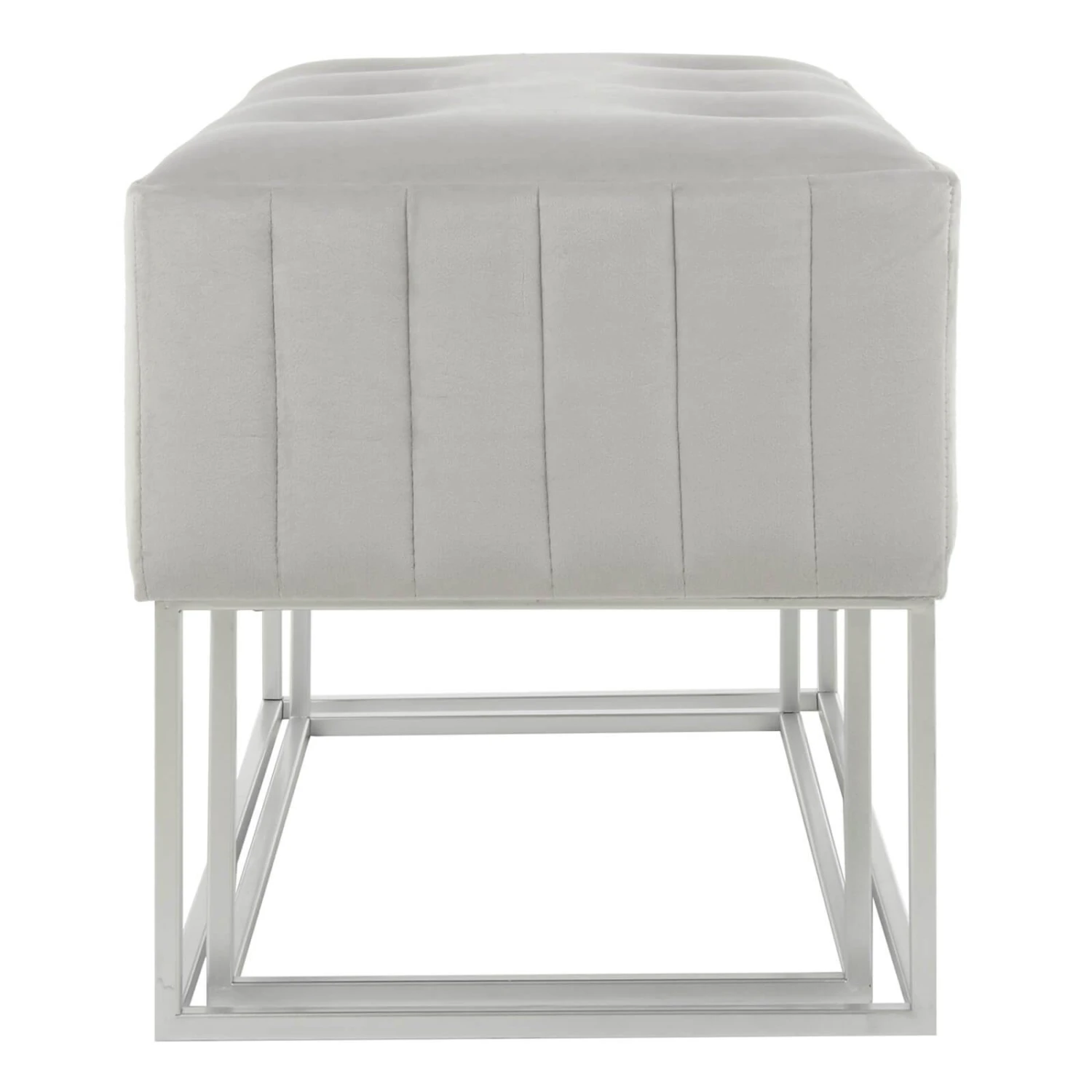 The Juliet design set of 2 nesting stools from the Hodge & Hodge range can be used as vanity seats, footstools, pouffes or a handy table for the drinks tray. Each rectangular shape nesting stool is upholstered in high quality plush velvet with channel sides and button tufting finish on top. With silver metal frame legs the nesting seats are perfect as functional, accent furniture for your living room or bedroom.