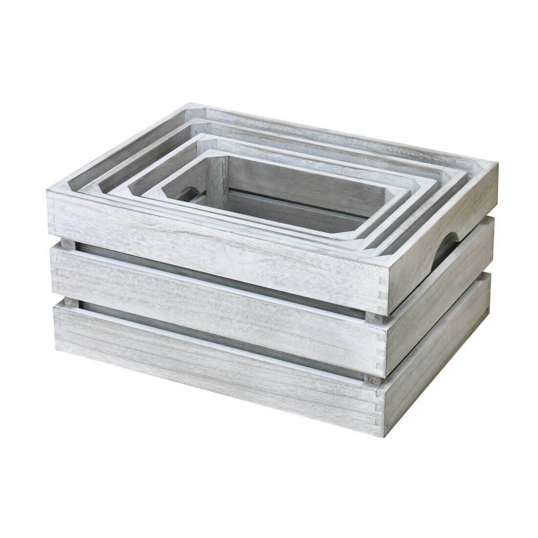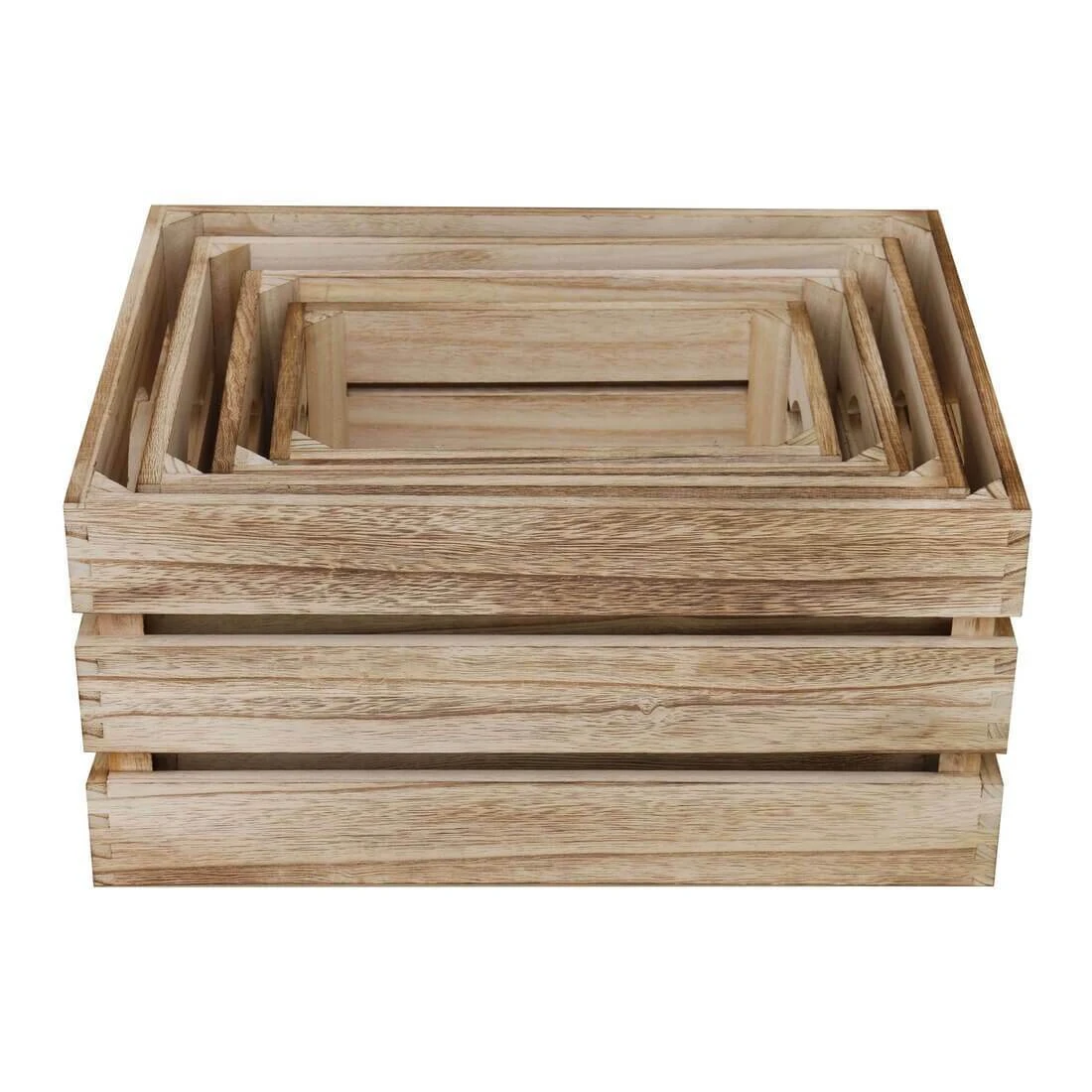 Each set comes with four different sized wooden crates that all fit inside one another to store away easily when not in use. The crates are perfect for organising bits and bobs around your home like loose produce or food storage tubs in the kitchen, muddy shoes and wellies by the front door, or keeping your wardrobe tidy and organised.